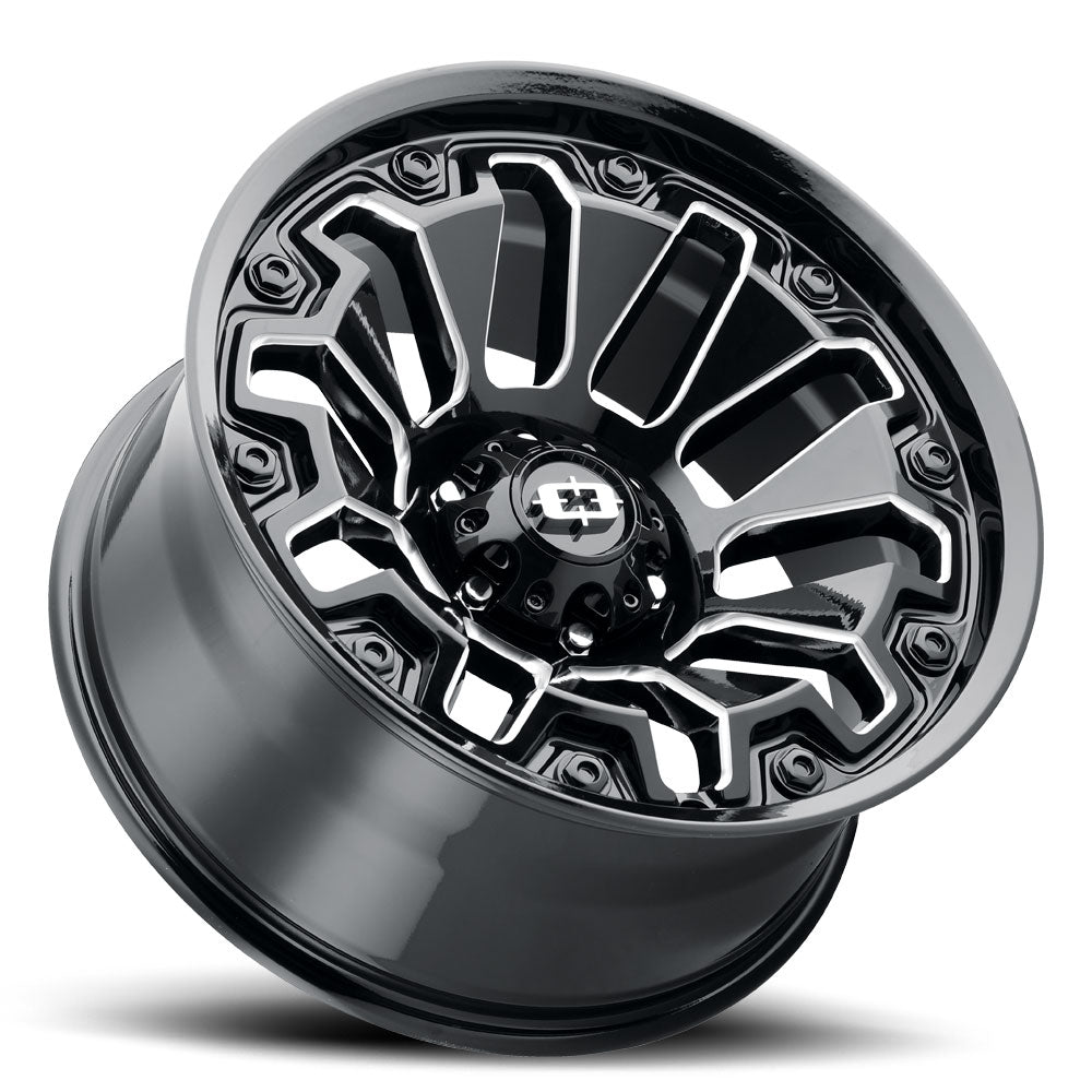 18x9 / 6x5.5 / -12 / 106.2 / Gloss Black Milled Spoke W/ Black Bolt Inserts